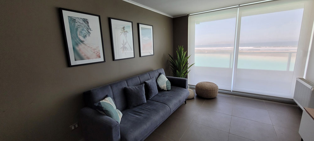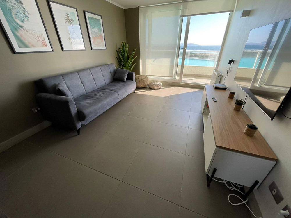 Nuestro cómodo departamento en el exclusivo Condominio Laguna del Mar, ideal para 5 huéspedes. Ubicado en un Piso 3, este alojamiento ofrece 2 dormitorios y 2 baños completos, además de una cocina full equipada, con vista panorámica inigualable a la laguna privada y al mar directamente desde su terraza.